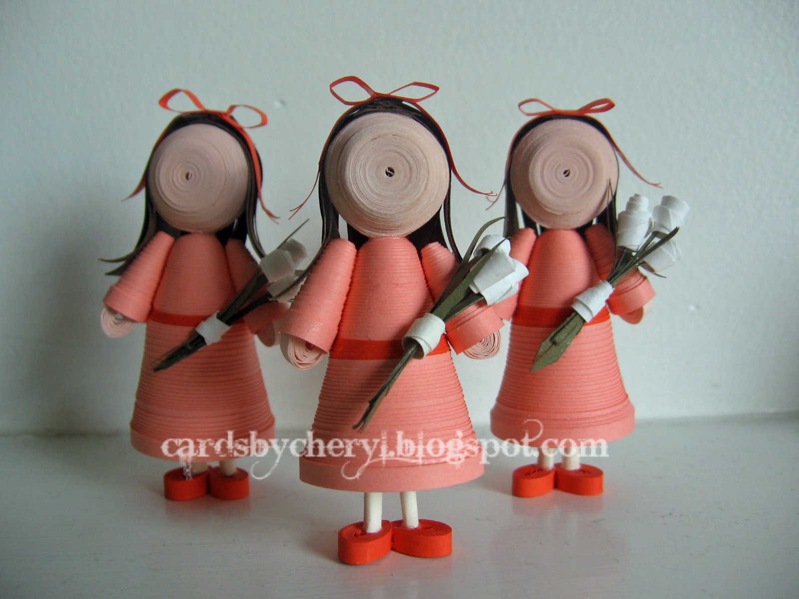 Until I have some new stuff to show you I thought I would show some of the 3d quilling I have done over the years...so here are "the girls" which I made in 2007. I love doing 3d quilling but don't do enough of it so hopefully this will inspire me to make more.